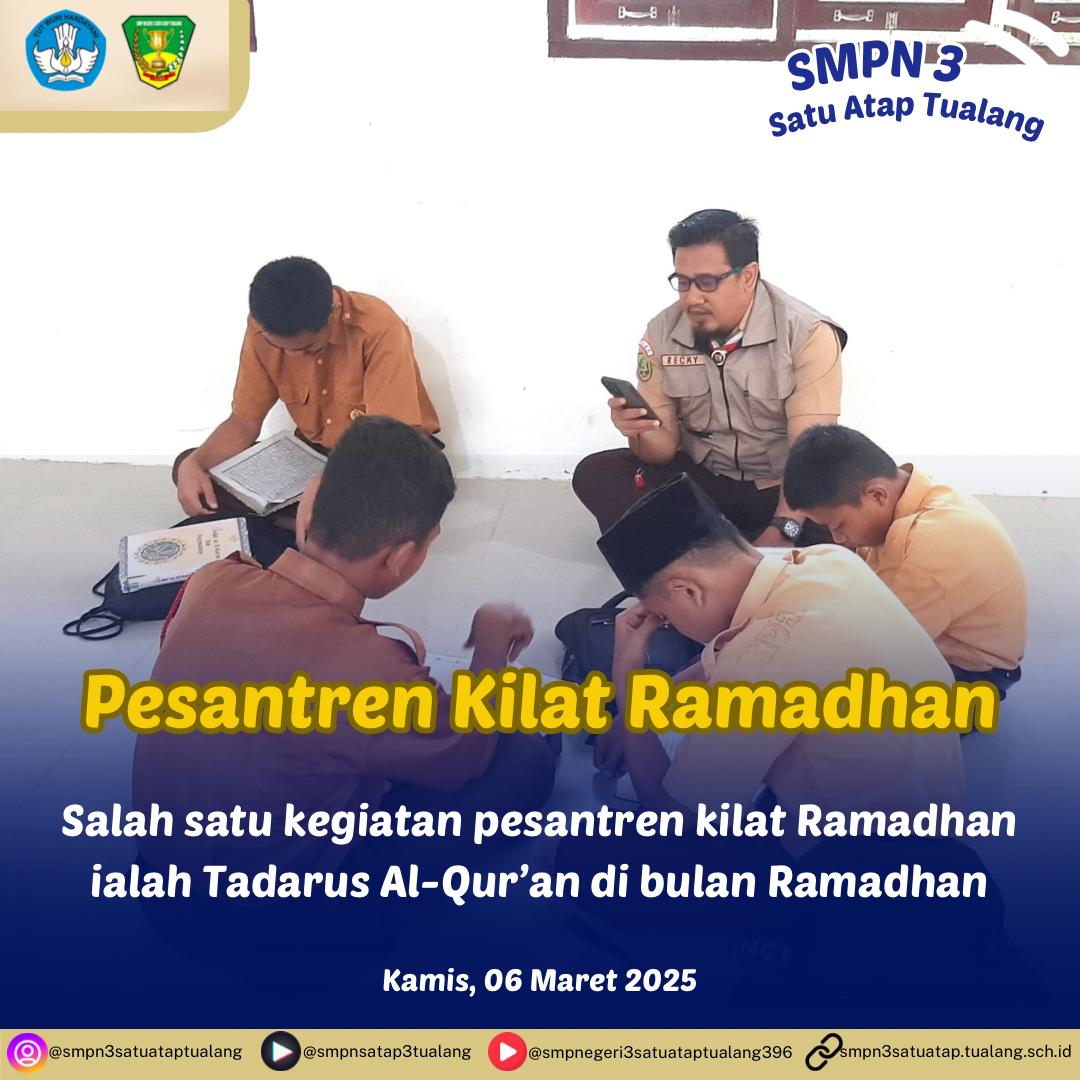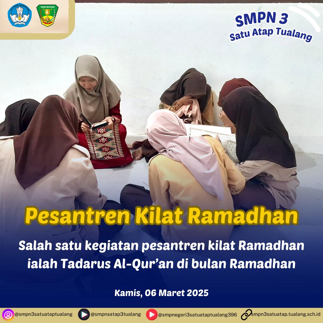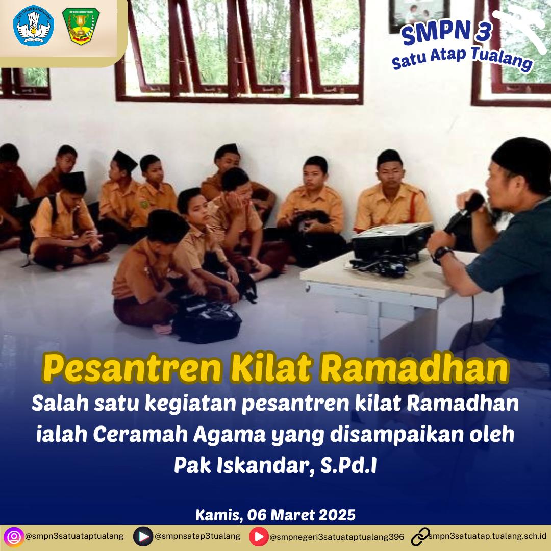 SMPN 3 Satu Atap Tualang (6/3/2025) - Pesantren kilat bukan sekadar kegiatan belajar agama, tetapi juga momen spesial yang penuh makna bagi para siswa. Program ini sering diadakan selama bulan Ramadan dengan tujuan meningkatkan pemahaman agama, memperkuat karakter, dan menanamkan nilai-nilai Islami dalam kehidupan sehari-hari.